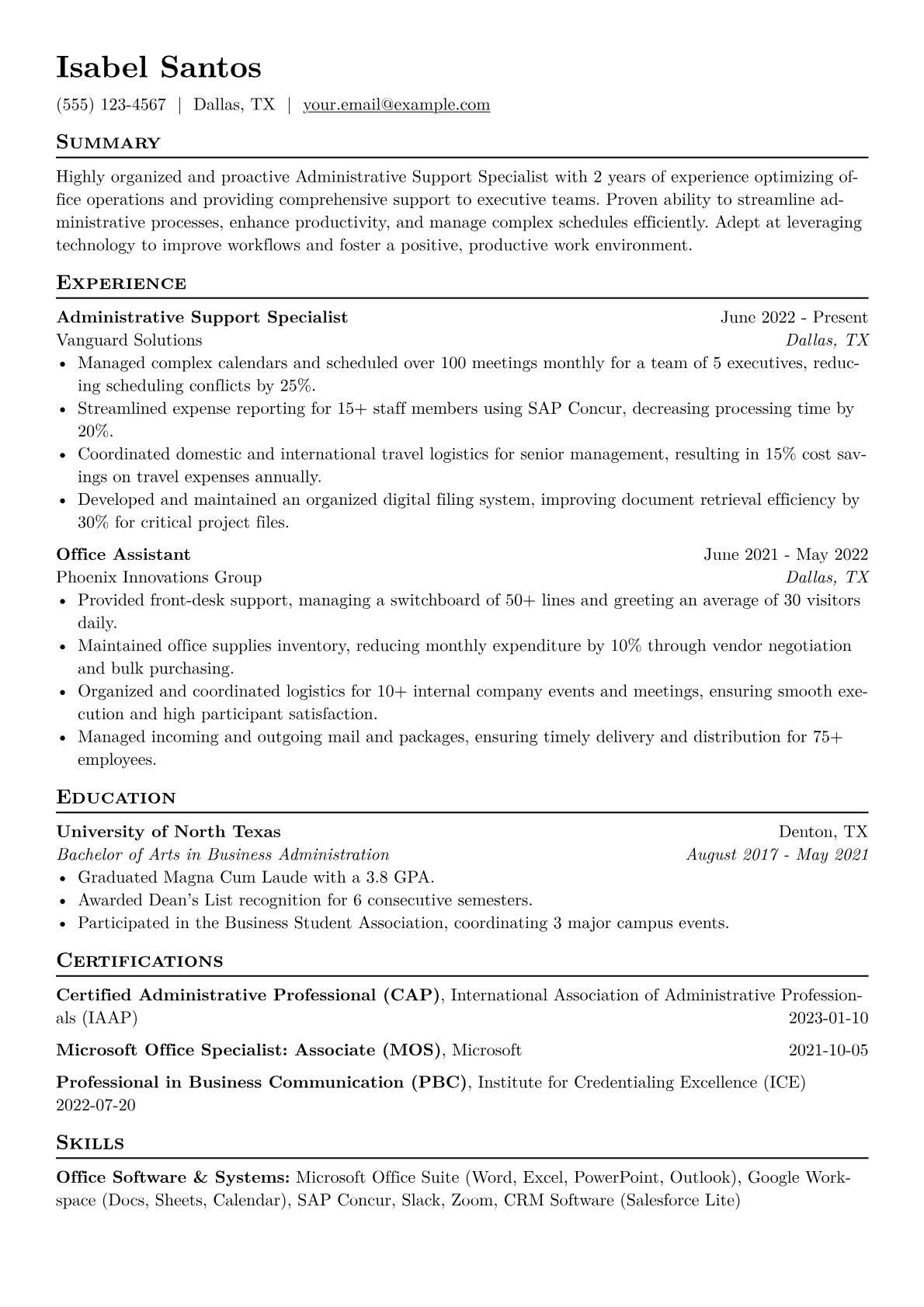 This template was built with JobSprout and can be remixed to create your own tailored Administrative Support Specialist resume.