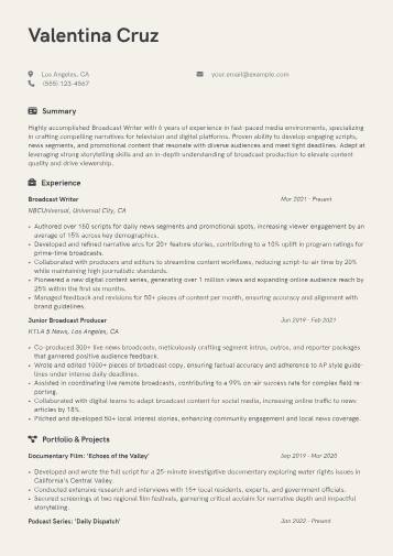 This template was built with JobSprout and can be remixed to create your own tailored Audio Director resume, reflecting your unique accomplishments and skills.