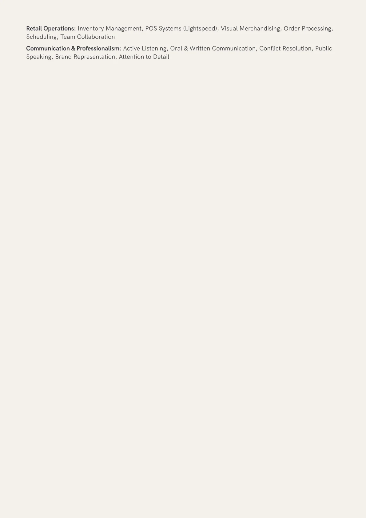 This resume example excels by strategically presenting a candidate's mid-level experience through quantified achievements, clearly detailing their impact on sales growth and client satisfaction. Its effective skills grouping immediately highlights core competencies like client relationship management, inventory oversight, and personalized styling, while mentioning relevant certifications reinforces professional development within the bridal industry. This structure quickly communicates a candidate's value to busy recruiters.