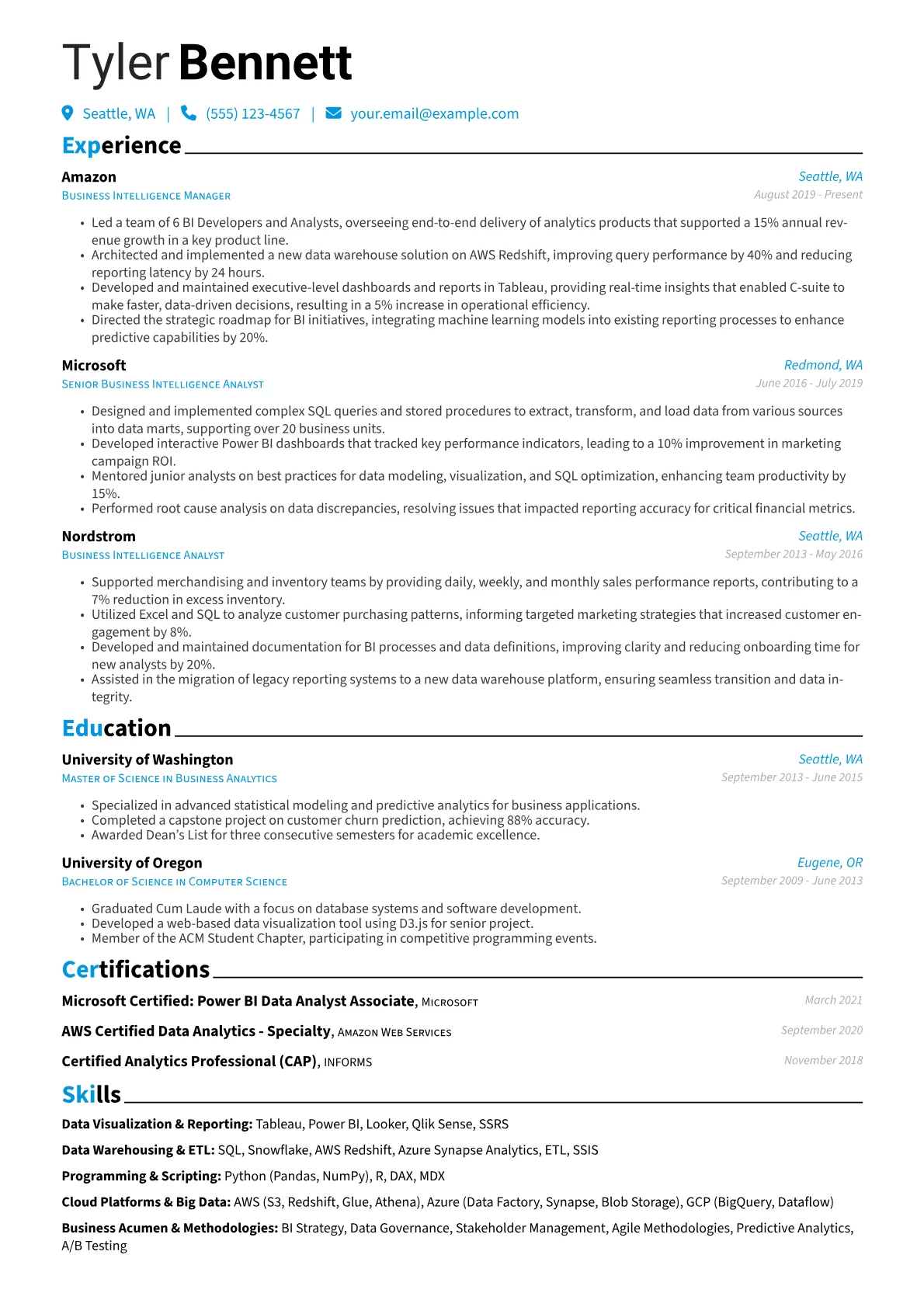 A standout Business Intelligence Manager resume in technology must effectively showcase strategic leadership, demonstrable business impact, and deep analytical expertise. Hiring managers prioritize candidates who can translate complex data into actionable insights and drive data driven decision making, particularly those with a proven track record in integrating BI solutions within large scale technology environments. The unique challenge lies in balancing technical prowess with strong communication and stakeholder management skills.