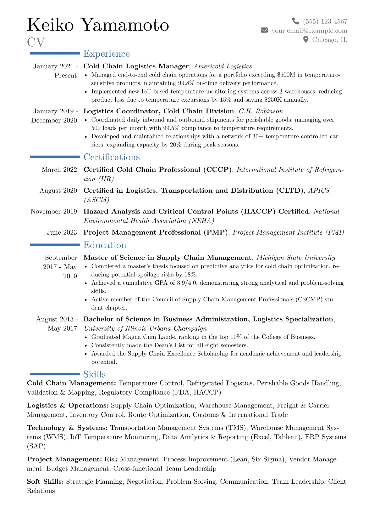 For a Cold Chain Logistics Manager, a strong resume highlights a deep understanding of temperature-sensitive supply chains and stringent compliance. Hiring managers in diverse industries seek candidates who can mitigate risks like spoilage or regulatory penalties, optimize operational efficiency, and maintain product integrity across complex distribution networks. Demonstrating expertise in specialized equipment and quality assurance is crucial.