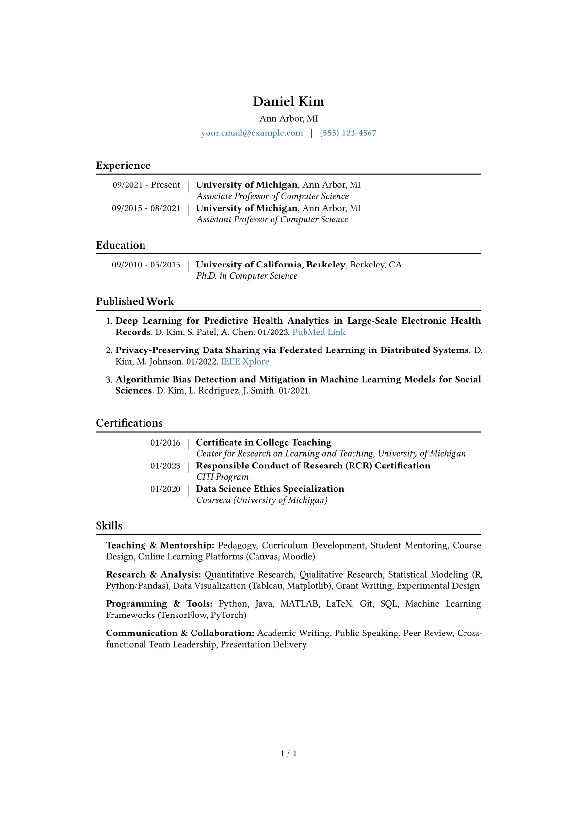 This template was built using JobSprout and can be easily remixed to create your own compelling College Professor resume, tailored precisely to your unique academic achievements.