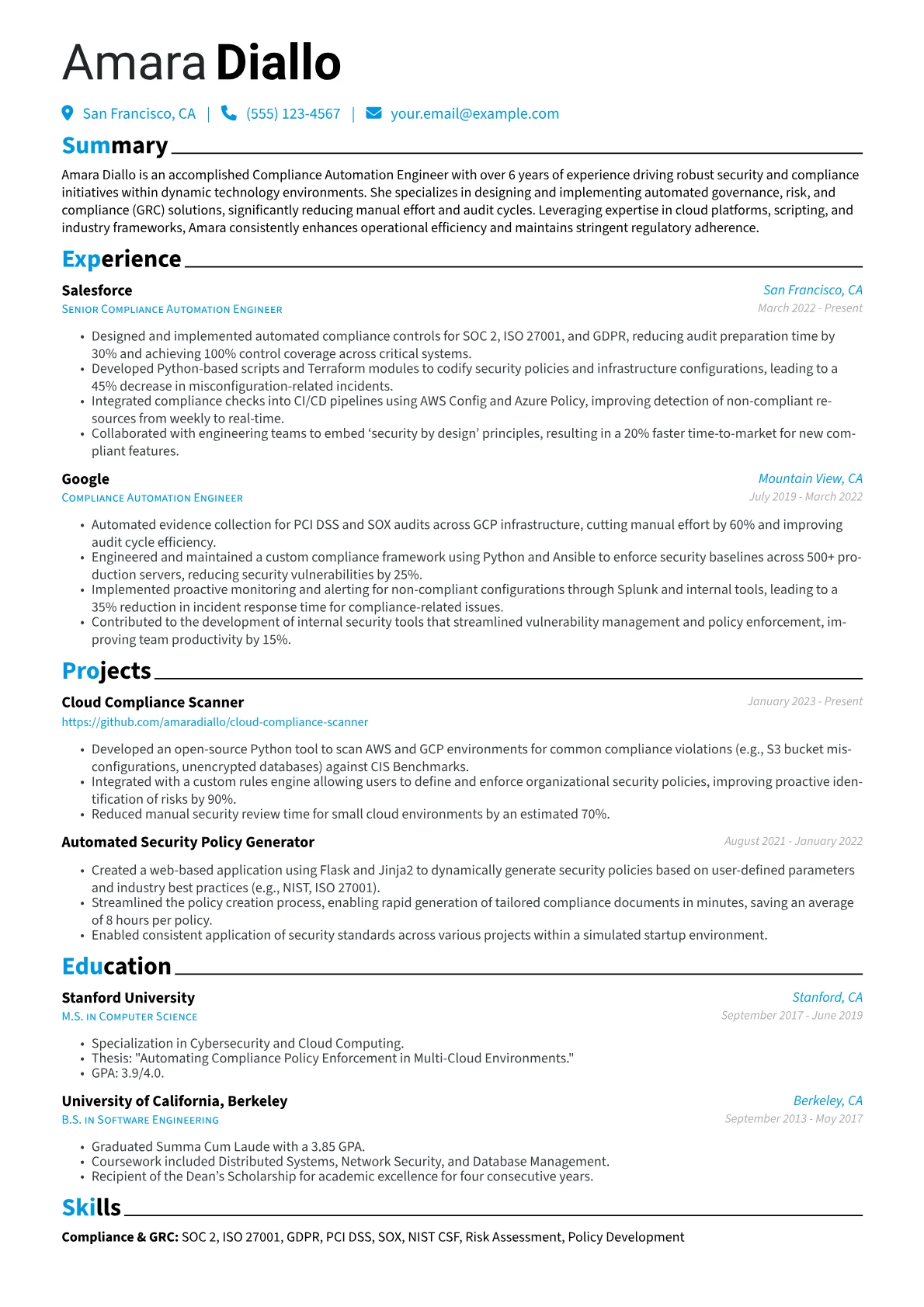 This template was built with JobSprout and can be remixed to create your own tailored Compliance Automation Engineer resume.
