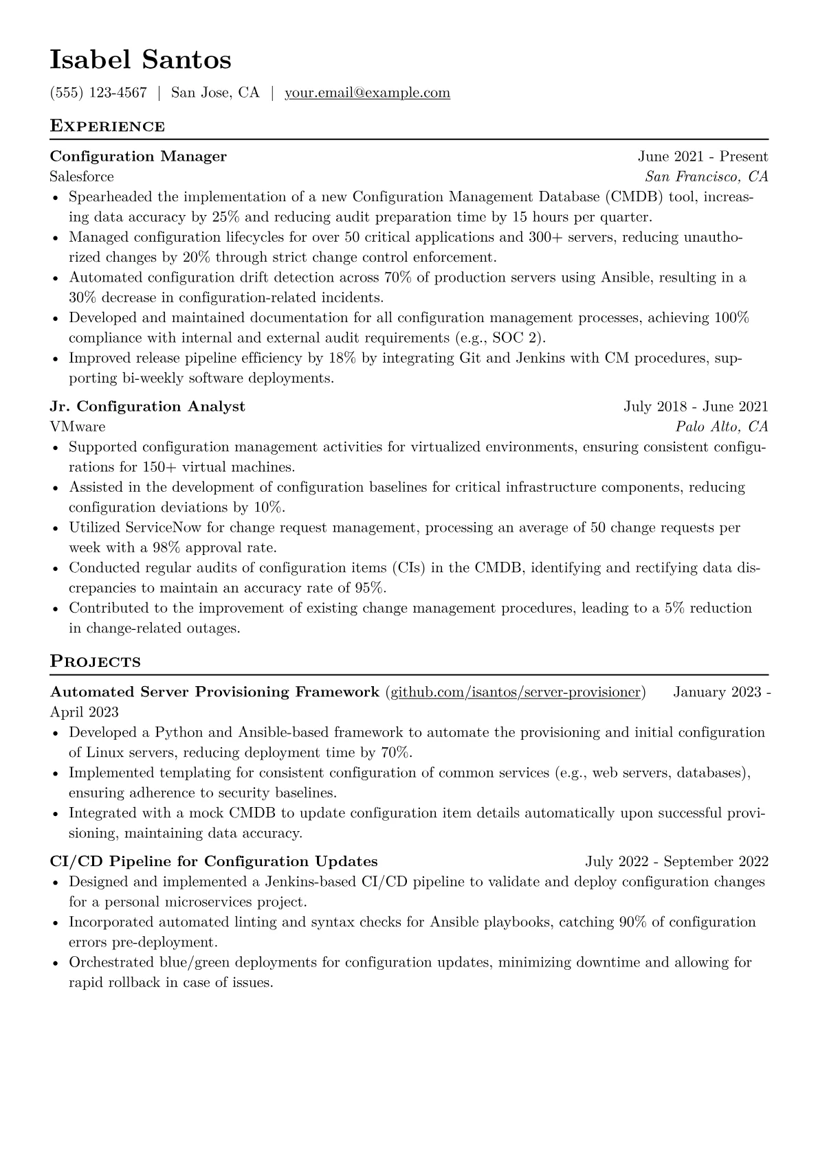 This insightful template was expertly built using JobSprout and can be easily remixed to create your own compelling Configuration Manager resume.