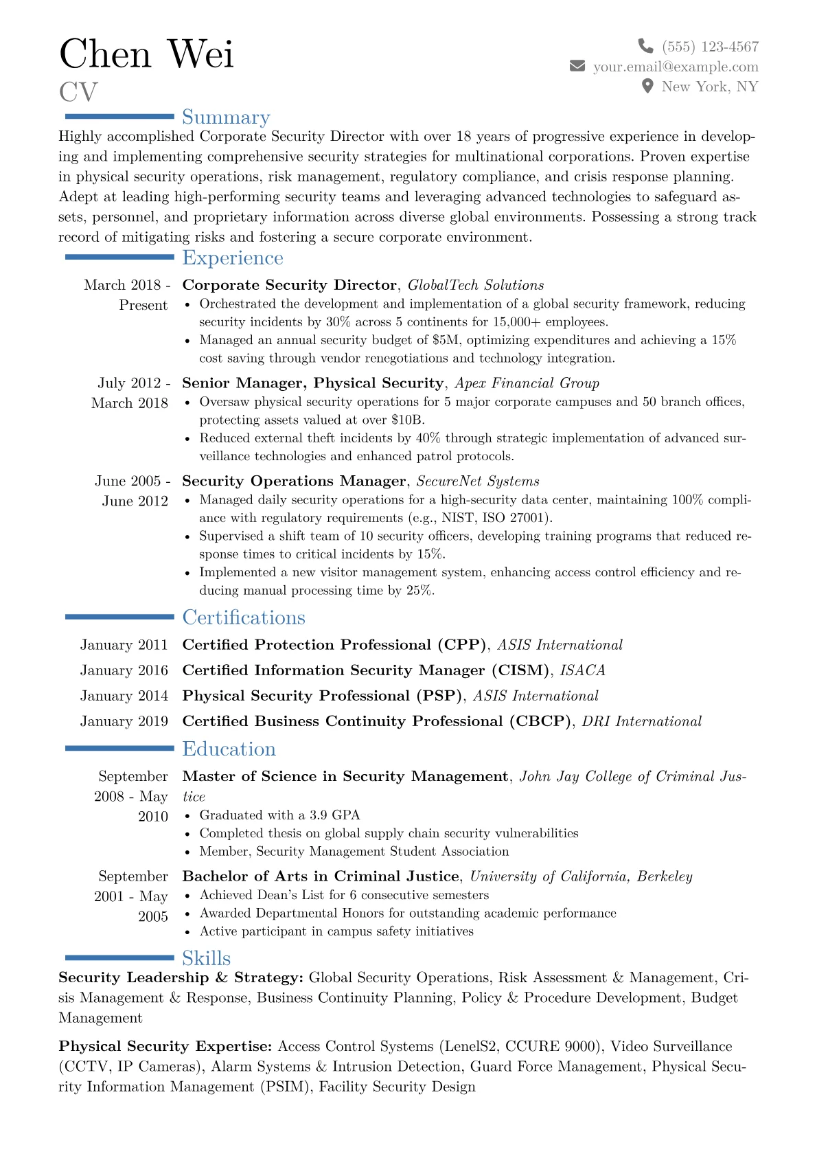 This template was built with JobSprout and can be remixed to create your own tailored Corporate Security Director resume.