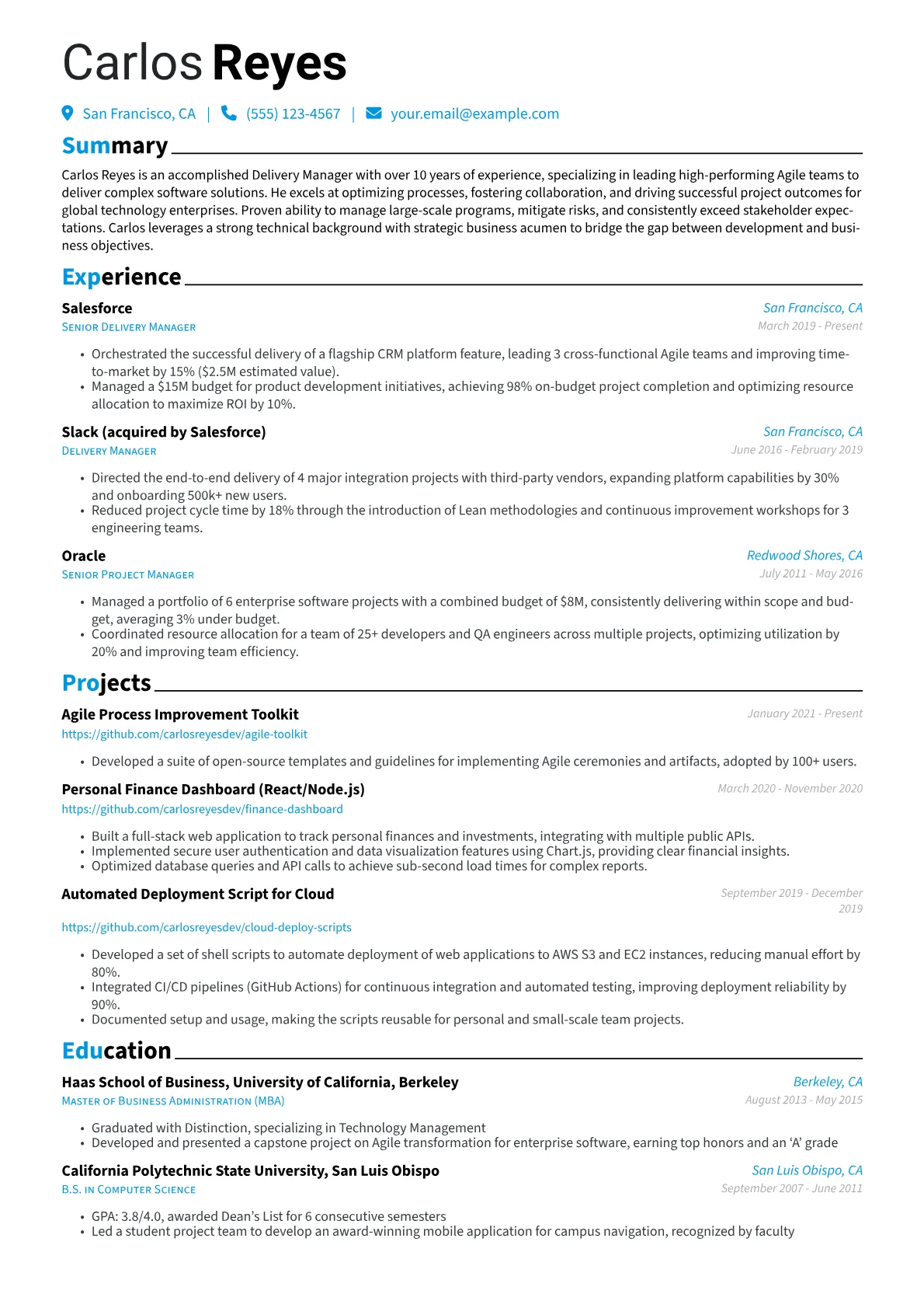 This template was built with JobSprout and can be remixed to create your own tailored Delivery Manager resume.