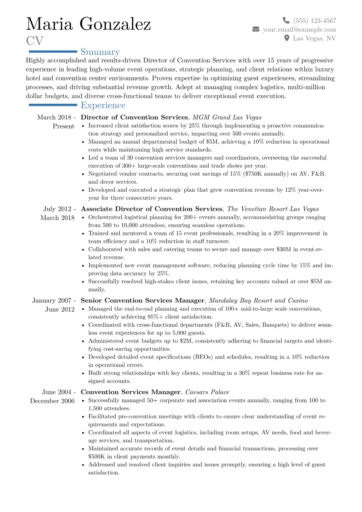This template was built with JobSprout and can be remixed to create your own tailored Director of Convention Services resume.