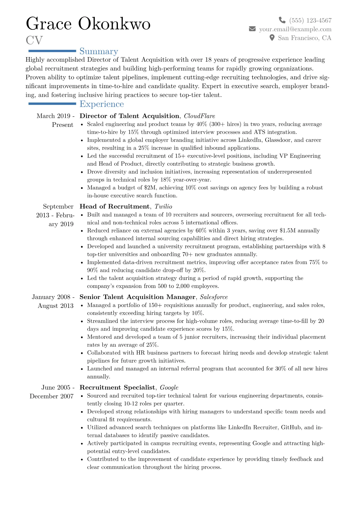 This template was built with JobSprout and can be remixed to create your own tailored Director of Talent Acquisition resume.