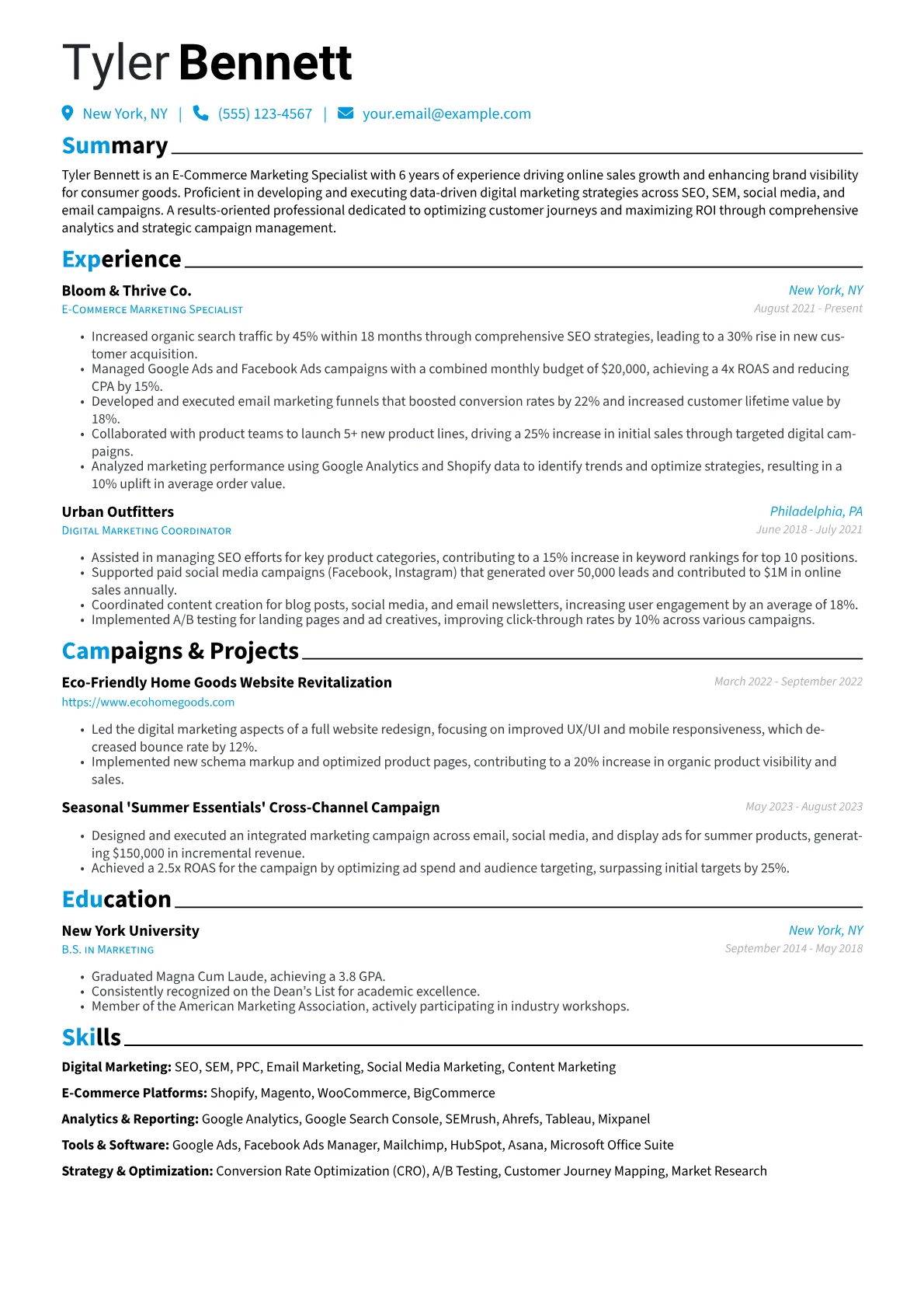 This template was built with JobSprout and can be remixed to create your own tailored E-Commerce Marketing Specialist resume.