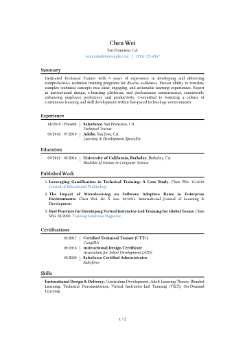 This example resume effectively showcases these vital elements. It quantifies achievements by stating specific improvements in student performance, such as a percentage increase in understanding or test scores. Skills are thoughtfully grouped into categories like "Instructional Design," "Classroom Management," and "Subject Matter Expertise," making it easy for recruiters to assess capabilities. Crucially, relevant certifications and the use of educational technology or economic simulation software are prominently featured, demonstrating both expertise and readiness for modern educational environments.