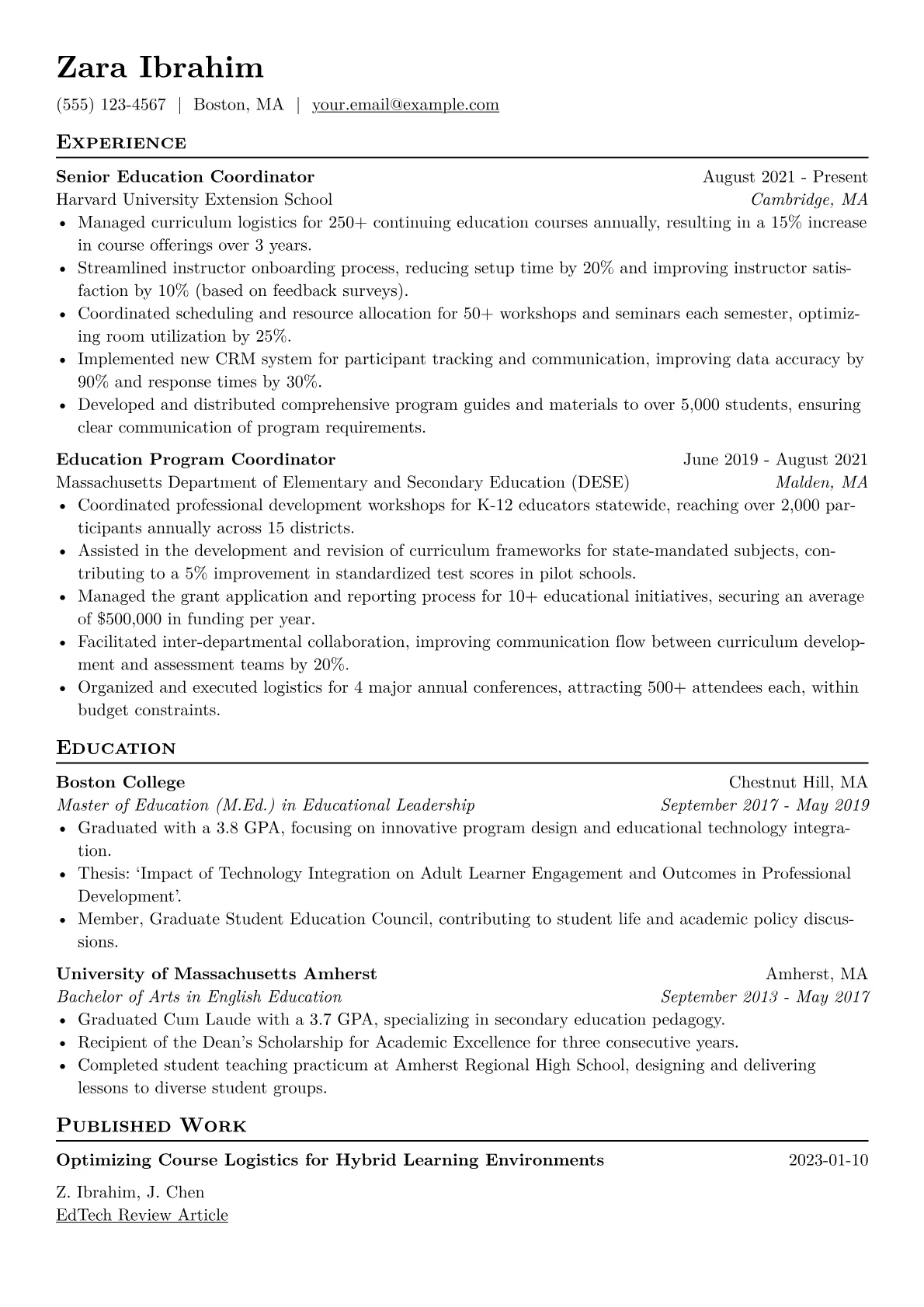 For an Education Coordinator, hiring managers in the education sector look for a clear impact on program success, participant engagement, and administrative efficiency. The unique challenge lies in effectively communicating both strong organizational skills and a genuine passion for educational outcomes and community building. A compelling resume demonstrates how a candidate has successfully streamlined operations and enriched learning experiences.