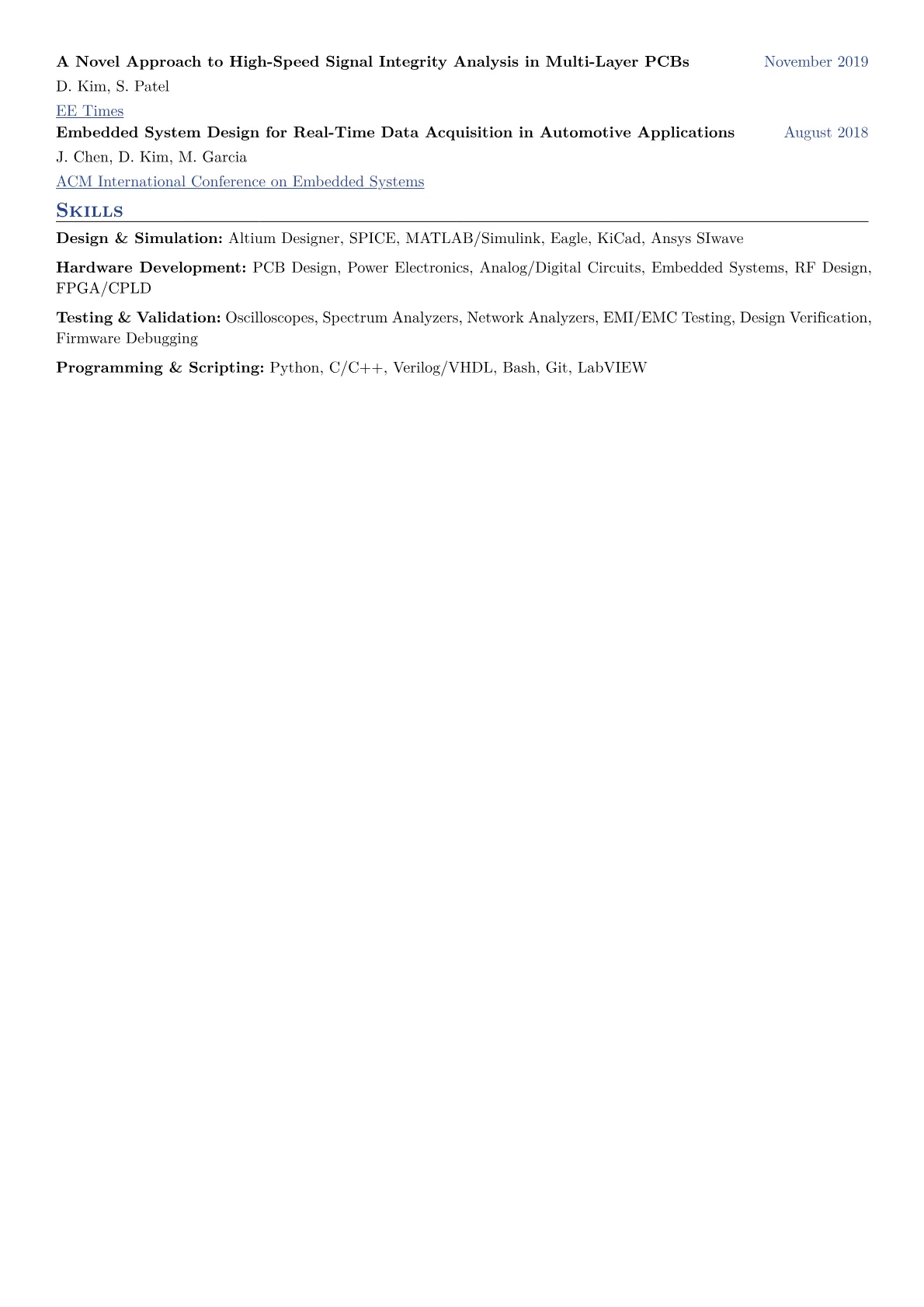 The JobSprout example excels by structuring these elements effectively. Achievements are clearly quantified, for instance, detailing improvements in machine performance by specific percentages or cost reductions achieved through design optimization. Technical skills are logically grouped, separating software proficiency from specific hardware or regulatory knowledge. Important certifications and industry tools, such as IPC standards or specific simulation software, are prominently featured, immediately signaling relevant capabilities to a hiring manager seeking specialized expertise.
