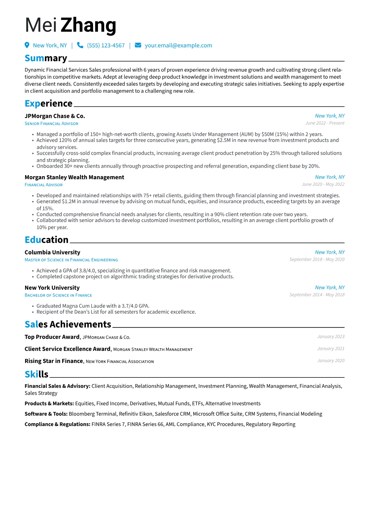 This template was built with JobSprout and can be remixed to create your own tailored Financial Services Sales resume. Leverage its structure to emphasize your unique contributions and secure your next role.