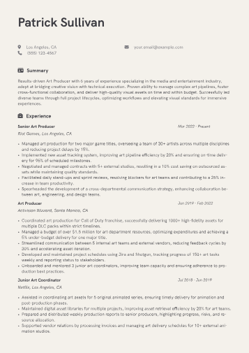 This template was built with JobSprout and can be remixed to create your own tailored Foley Artist resume, ensuring it resonates with hiring managers.