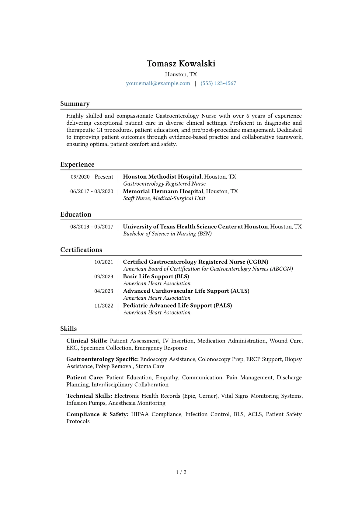 This template was built with JobSprout and can be remixed to create your own tailored Gastroenterology Nurse resume. Start building your professional profile today.