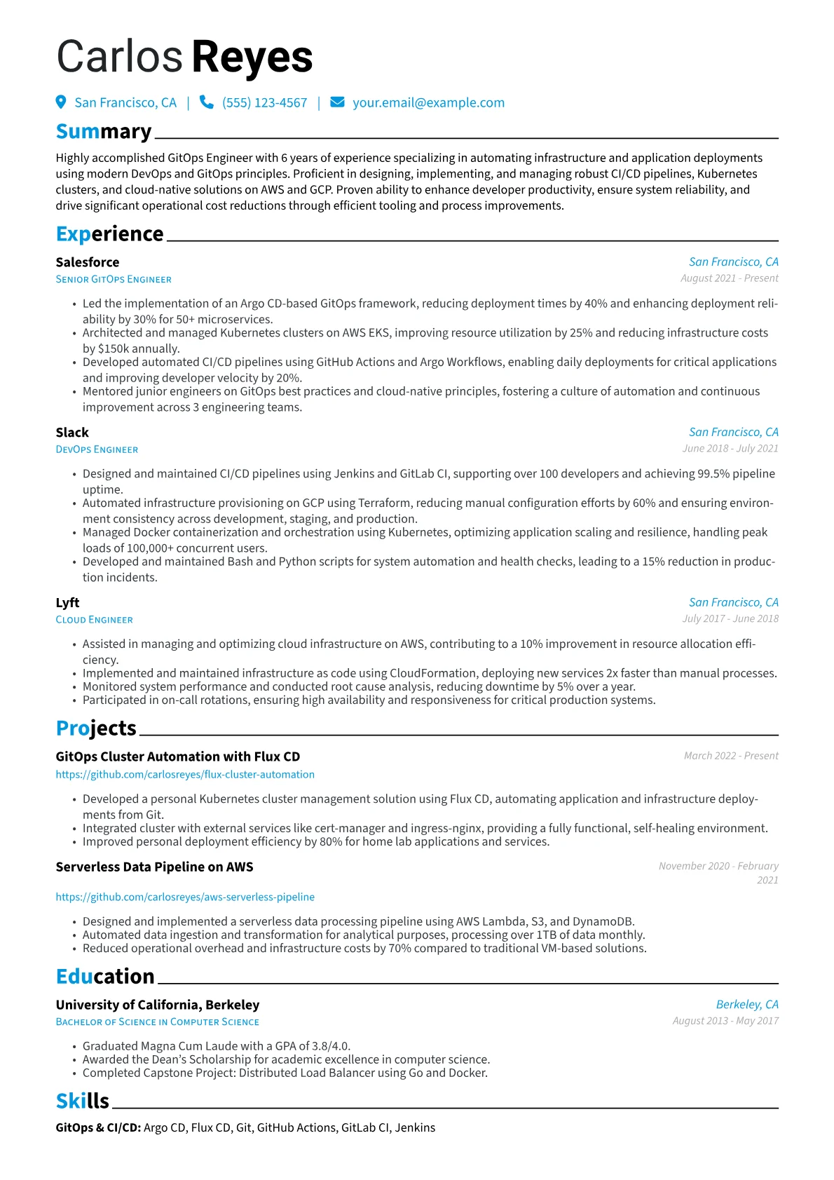 This template was built with JobSprout and can be remixed to create your own tailored GitOps Engineer resume. Leverage its clear structure to present your expertise persuasively.