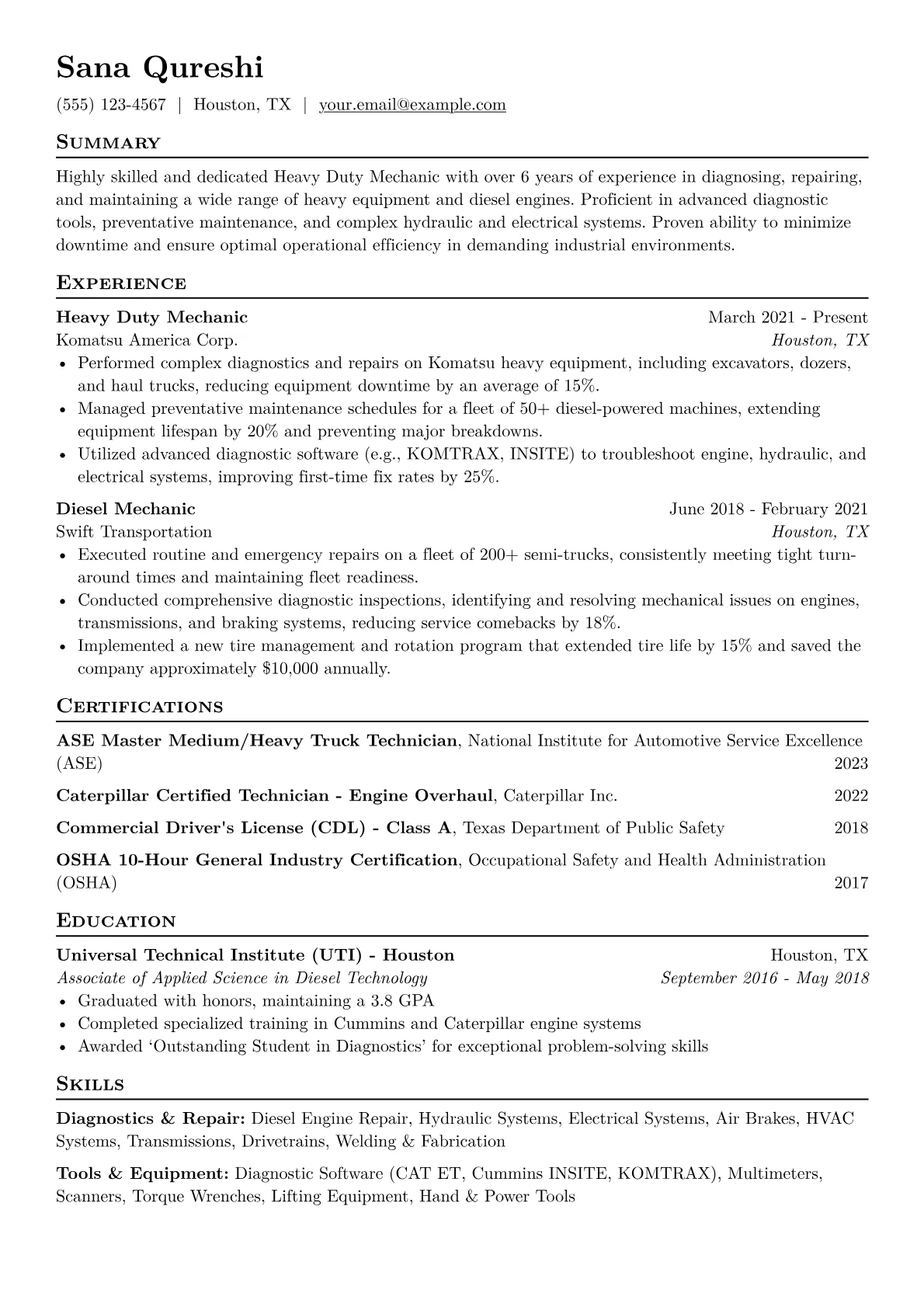 This template was built with JobSprout and offers a clear, impactful structure. It can be easily remixed to create your own tailored Heavy Duty Mechanic resume that resonates with manufacturing employers.