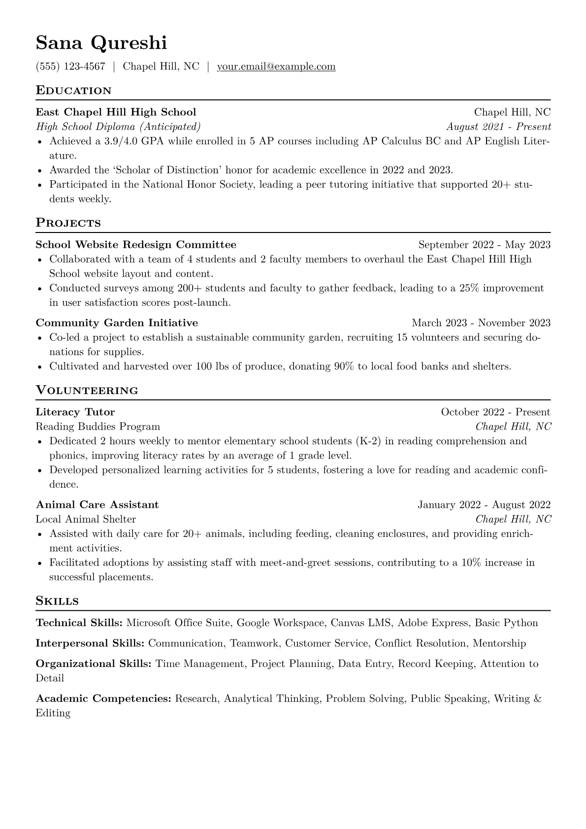 For a high school student targeting roles in Education, hiring managers prioritize enthusiasm, reliability, and transferable skills. They look for evidence of responsibility, strong academics (e.g., a 3.5+ GPA), and any experience working with children or peers. Concrete achievements like leading study groups, peer tutoring, or participating in educational outreach programs are key. Certifications such as CPR/First Aid or even advanced proficiency in presentation software demonstrate preparedness and a proactive approach, signifying a student's readiness to contribute positively to a learning environment.
