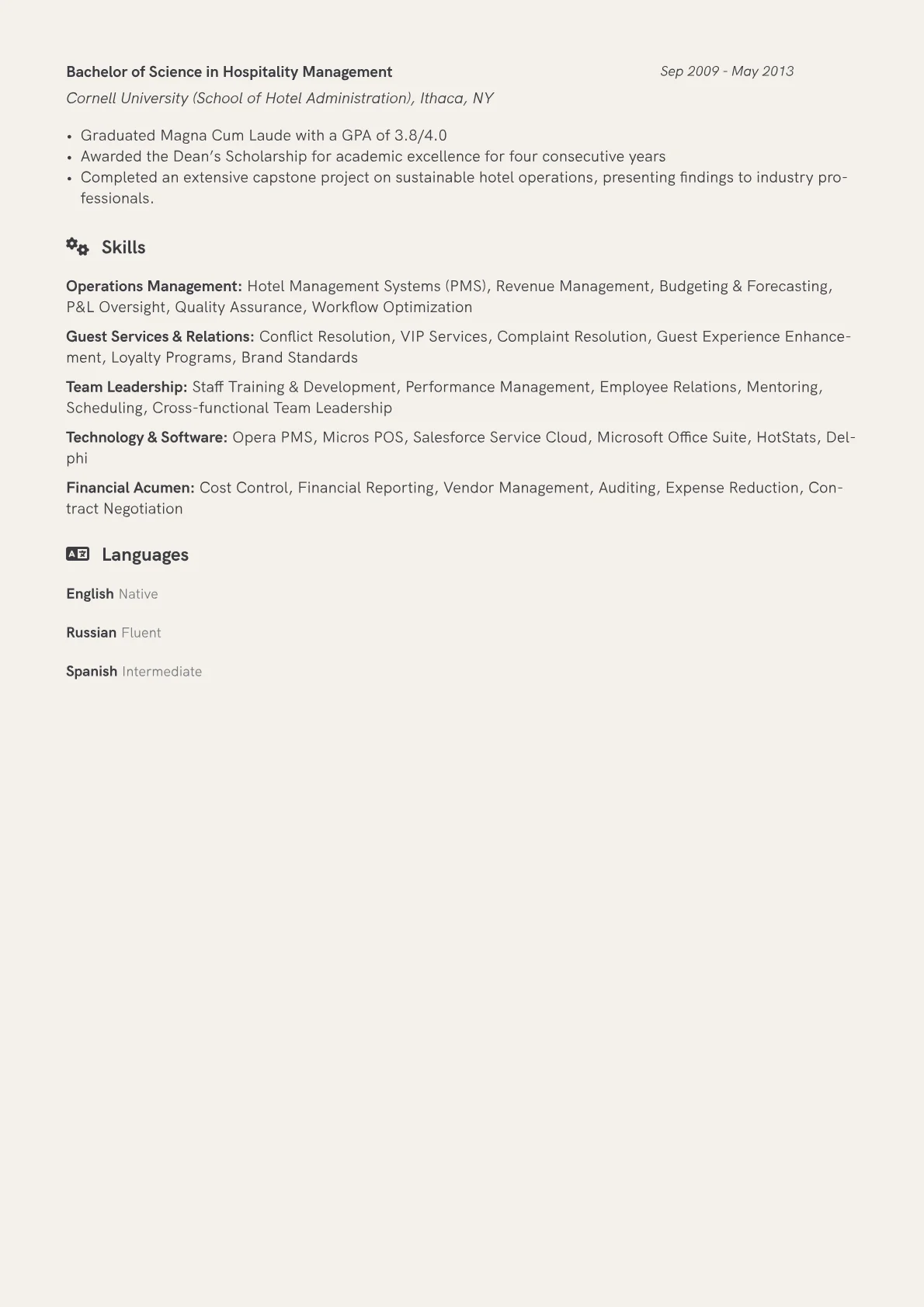 This template was built with JobSprout and can be remixed to create your own tailored Hotel Operations Manager resume.