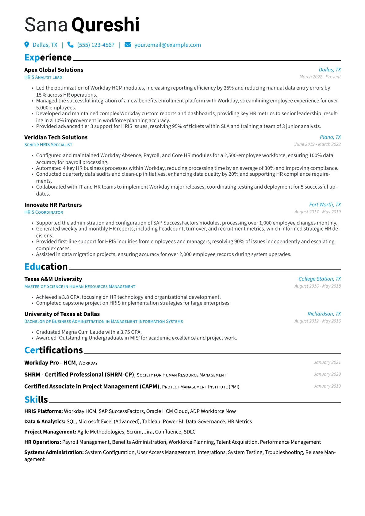 A strong HRIS Analyst resume, particularly for a mid-level role in diverse industries, effectively showcases a blend of technical acumen and business insight. Hiring managers seek evidence of improving HR processes through technology, ensuring data integrity, and supporting strategic decision-making. The unique challenge lies in articulating how HRIS expertise translates into tangible business value across varied operational contexts.