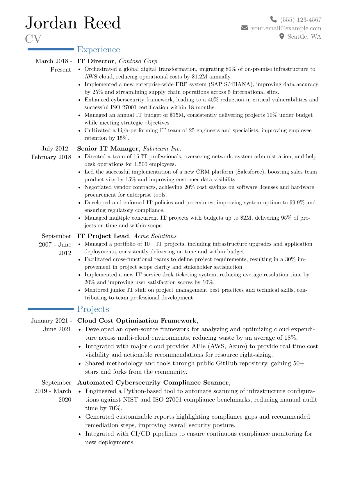 This robust template was built with JobSprout and can be remixed and customized to create your own compelling IT Director resume.
