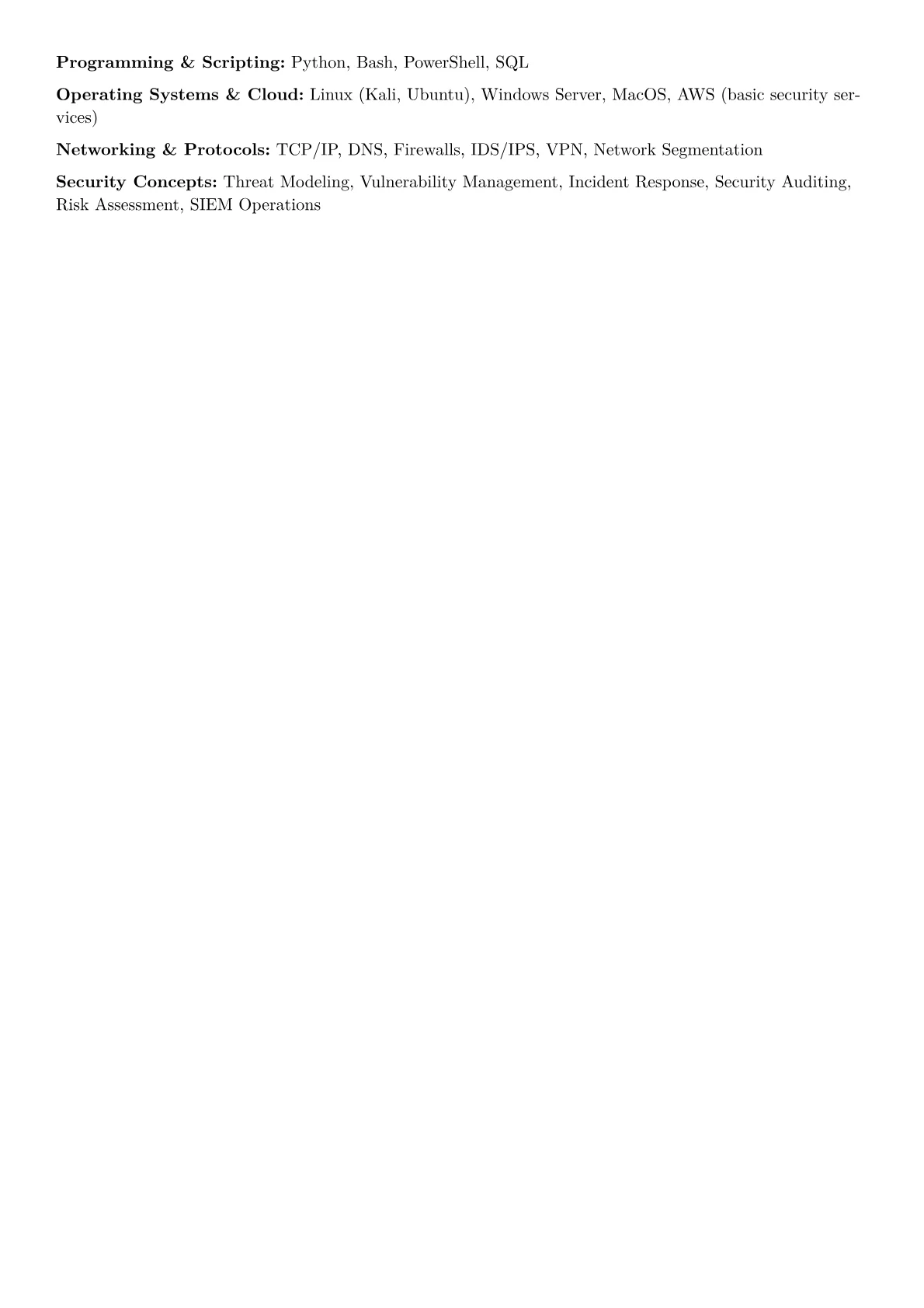 For a Junior Security Analyst role in Technology, hiring managers prioritize practical exposure over extensive experience. They seek candidates demonstrating a foundational understanding of security principles like the CIA triad, network protocols, and common attack vectors. Quantifiable achievements, even from internships or personal projects, are crucial, such as "identified 15 potential vulnerabilities in a web application using OWASP methodologies." Mentioning specific SIEM tools like Splunk or ELK, vulnerability scanners like Nessus, and scripting languages like Python or PowerShell, alongside certifications such as CompTIA Security+ or CySA+, significantly strengthens an application. The challenge is showcasing hands-on application of these skills.