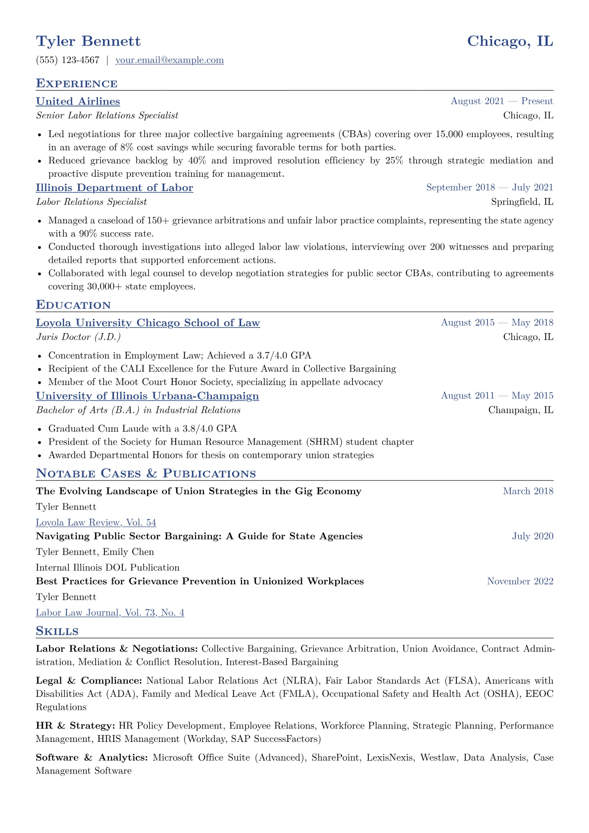 Crafting an impactful Labor Relations Specialist resume in the legal sector requires highlighting deep expertise in collective bargaining, union relations, and intricate labor law compliance. Hiring managers seek candidates who demonstrate a proven ability to mitigate legal risk and navigate complex disputes effectively, balancing employee advocacy with organizational legal integrity.