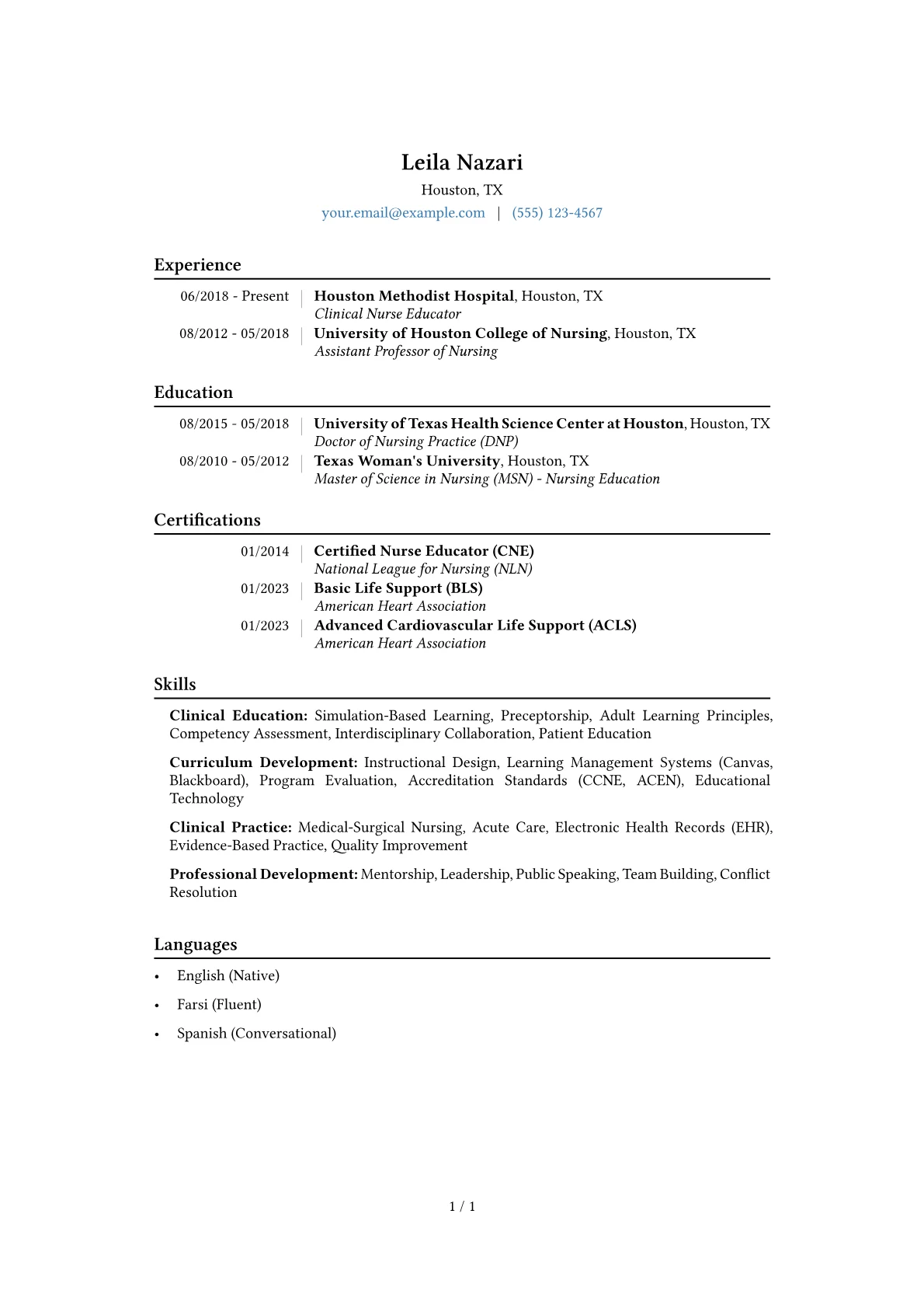 This template was built with JobSprout and can be remixed to create your own tailored Nurse Educator resume.