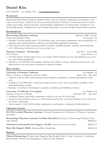 This example CV effectively showcases a Pediatric Neurologist's capabilities by emphasizing quantifiable achievements. It structures clinical experience to highlight specific patient populations managed, such as "oversaw a panel of 350+ patients with epilepsy and movement disorders." Skills are logically grouped into categories like "Clinical Proficiencies," detailing expertise in EEG interpretation and VNS management, and "Technical Tools," detailing EMR fluency and telemedicine platforms. Certifications like ABPN Child Neurology are prominently displayed, alongside clear descriptions of research contributions and publications, providing a comprehensive view of the candidate's professional contributions.