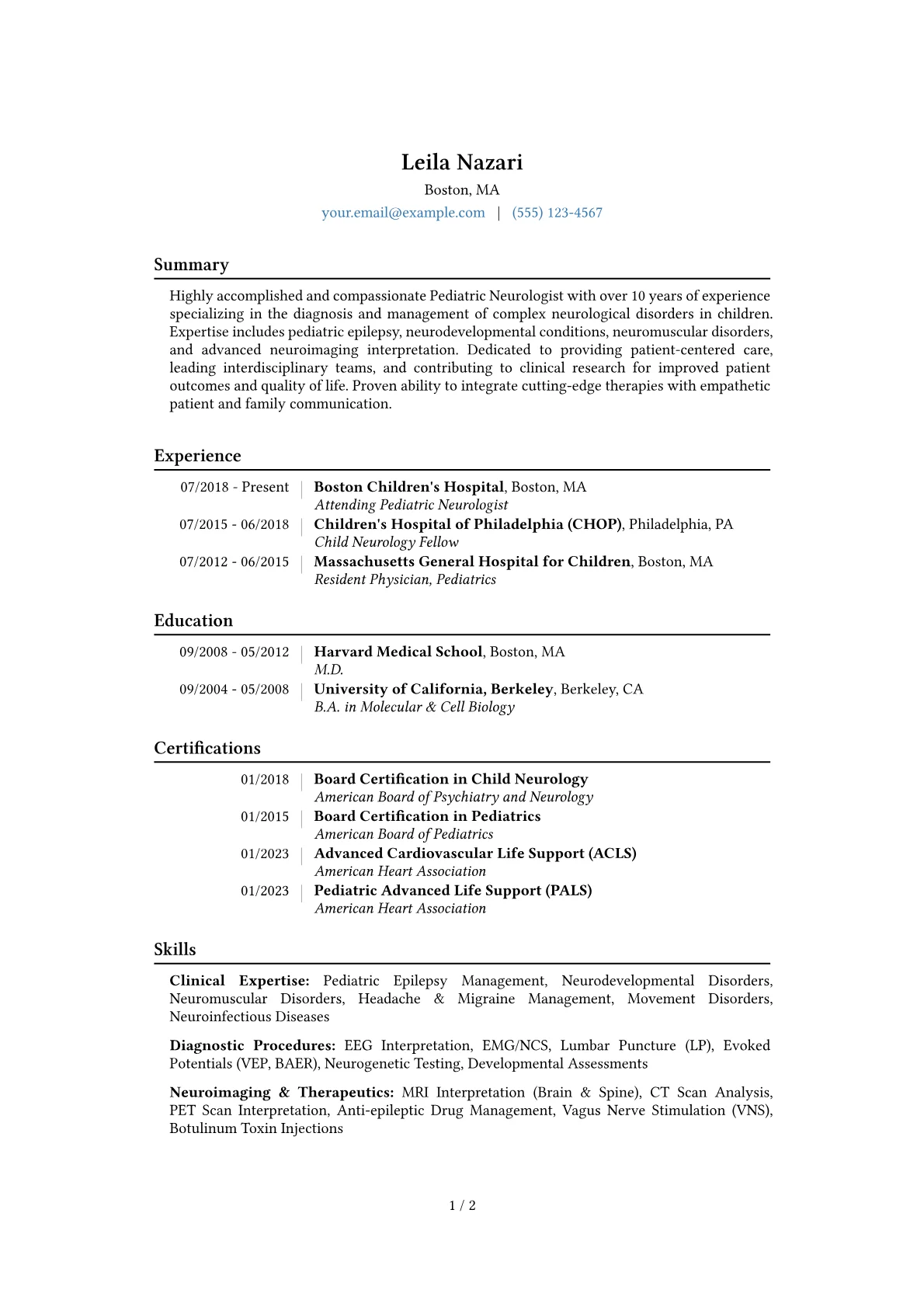This template was built with JobSprout and can be remixed to create your own tailored Pediatric Neurologist resume.