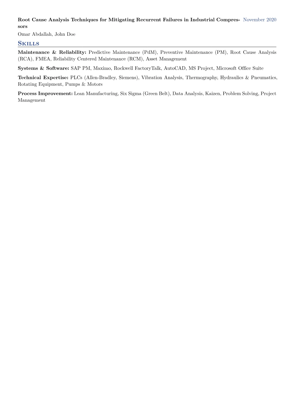 This example CV excels by clearly quantifying maintenance achievements; for instance, it details a "20% reduction in unplanned downtime by optimizing preventive maintenance schedules." The skills section is thoughtfully segmented, separating technical proficiencies such as "Hydraulic and Pneumatic Systems Troubleshooting" from software expertise like "SAP PM" or "Maximo." Critical certifications such as CMRP or specific equipment training are prominently featured, immediately communicating a specialized skillset. The professional summary effectively summarizes key qualifications, setting the tone for a candidate focused on continuous improvement and operational reliability.
