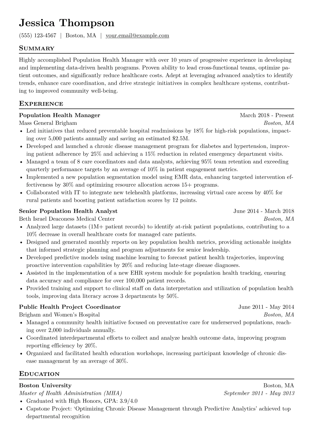 This template was built with JobSprout and can be remixed to create your own tailored Population Health Manager resume.
