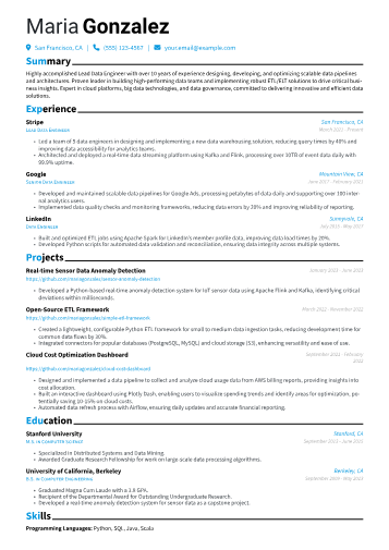 This example CV excels by structuring information to highlight these critical areas. It groups technical skills effectively, separating core Redis concepts from related programming languages (Python, Go, Node.js) and cloud platforms. Achievements are quantified, detailing tangible results such as "reduced API response times by 30ms using Redis caching" or "managed Redis clusters handling 500,000 concurrent sessions." The resume also prominently features experience with crucial Redis operational tools and architectural patterns for resilience and performance.