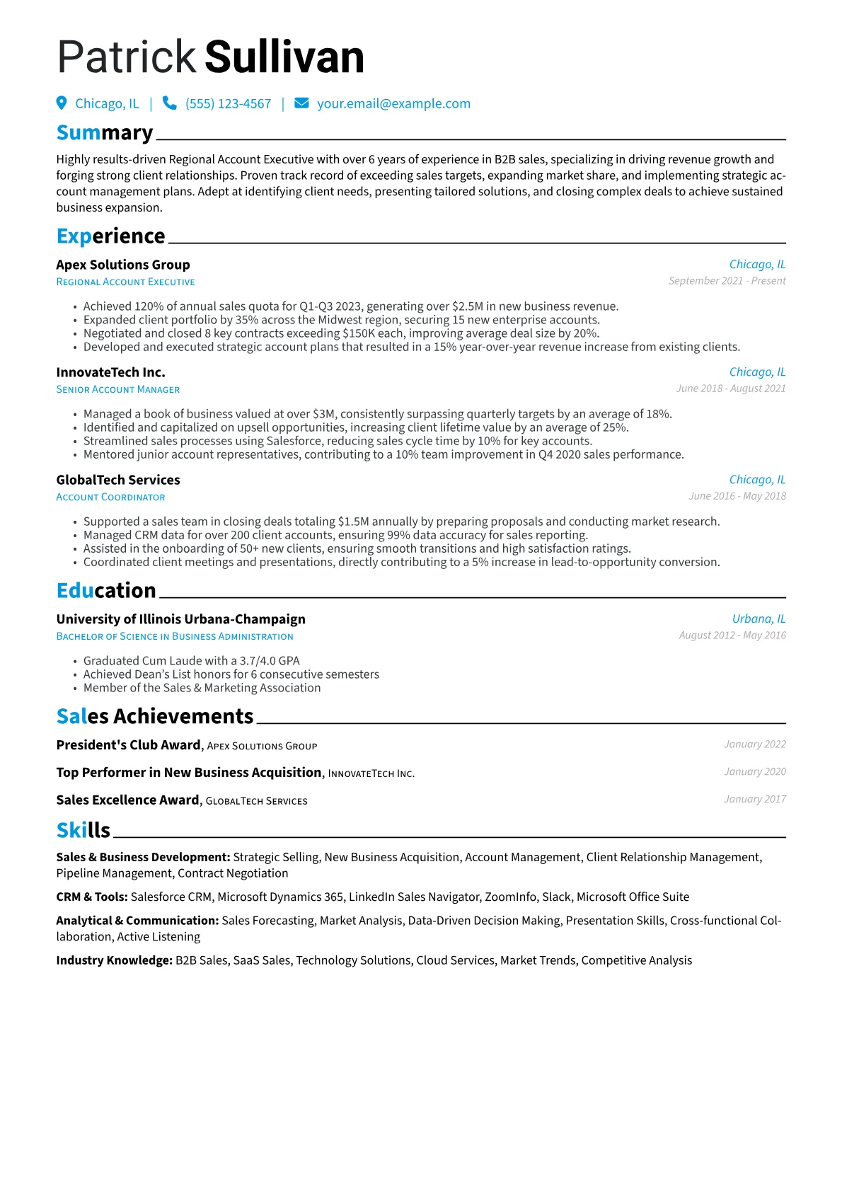 This template was built with JobSprout and can be remixed to create your own tailored Regional Account Executive resume. Customize it to reflect your unique achievements and professional journey.