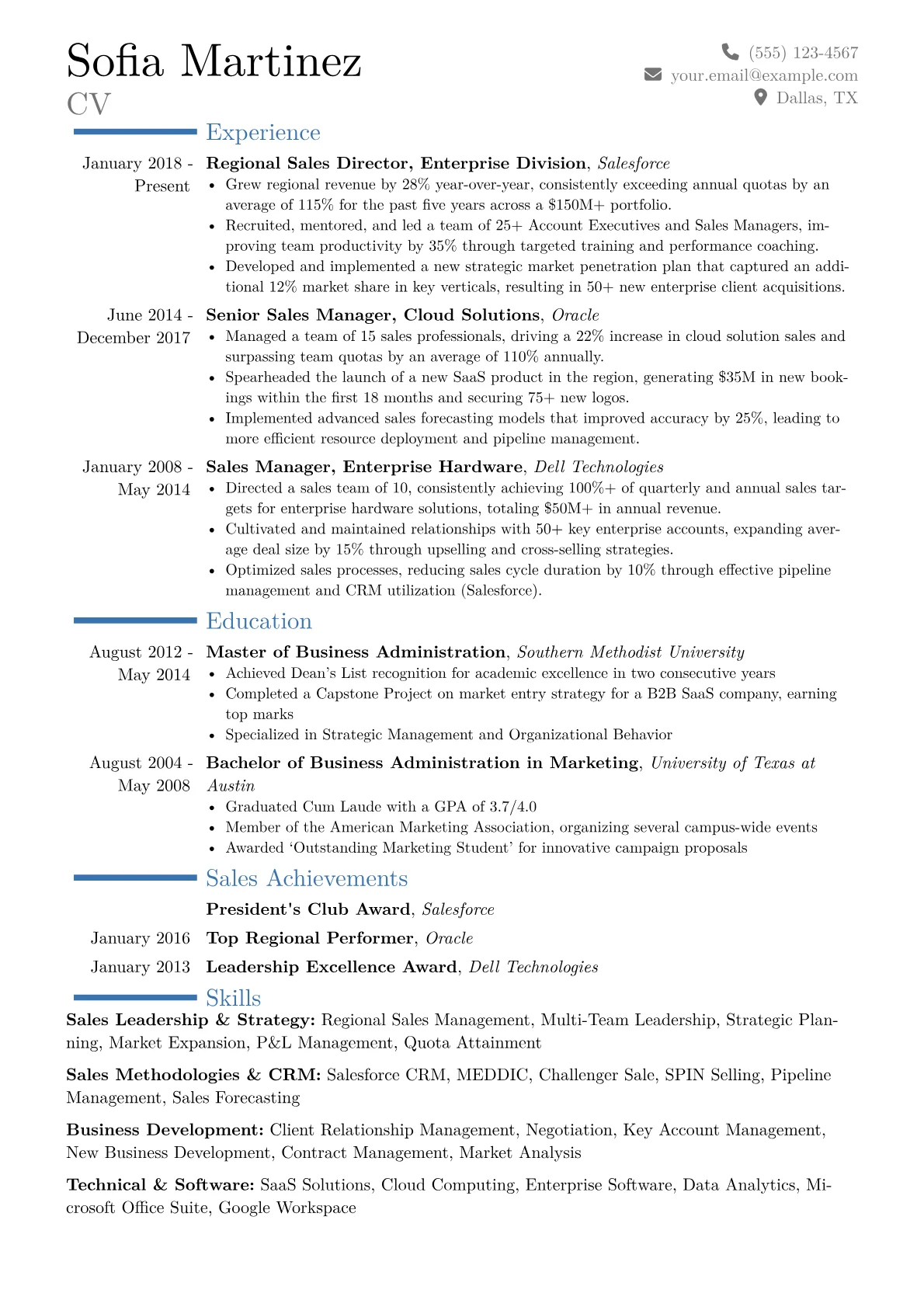 A strong Regional Sales Director resume effectively showcases a proven track record of exceeding complex sales targets, strategic market penetration, and exceptional team leadership. Hiring managers in diverse "Other" industries particularly seek candidates who demonstrate adaptability, can drive significant revenue growth in nuanced markets, and possess strong P&L management skills. The ability to build and scale high-performing sales teams across various territories is paramount.
