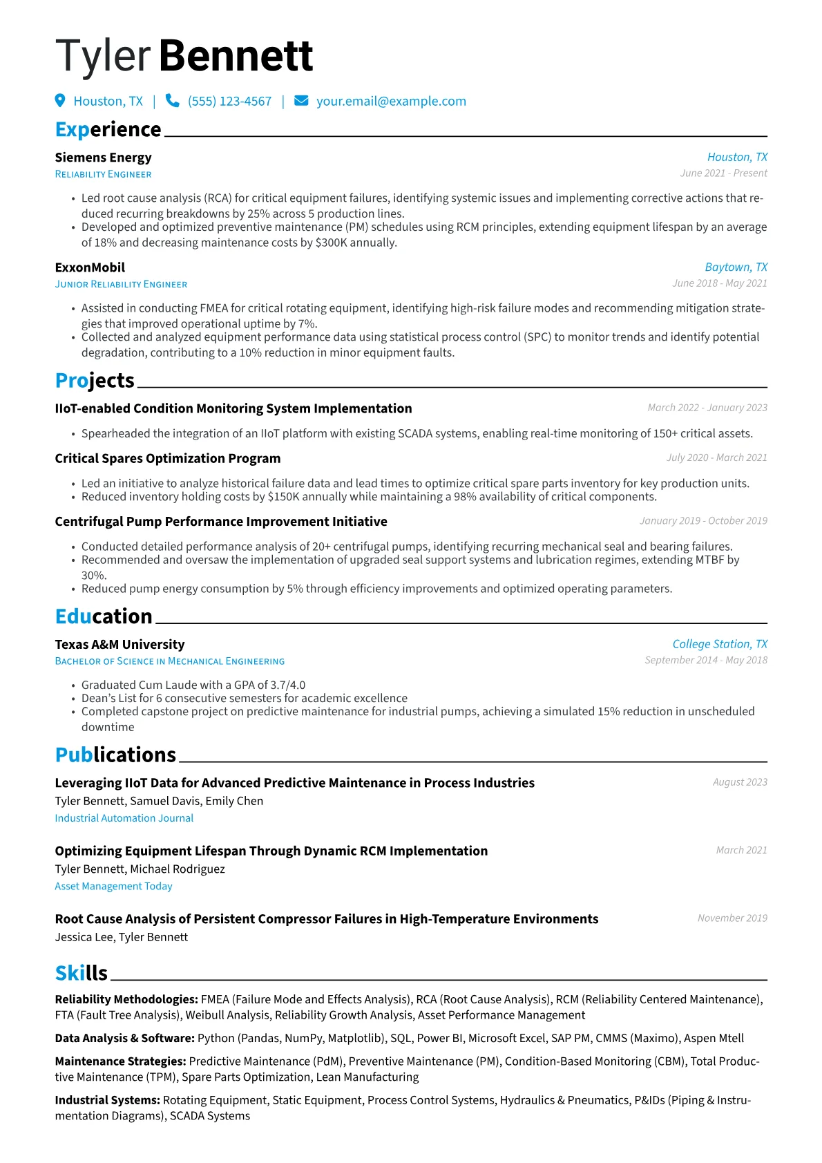 Reliability Engineers in manufacturing need resumes that clearly highlight their impact on operational uptime and asset longevity. Hiring managers look for a track record of implementing data-driven strategies that reduce breakdowns, improve OEE, and cut maintenance costs, often valuing expertise in predictive technologies and root cause analysis within complex production environments.