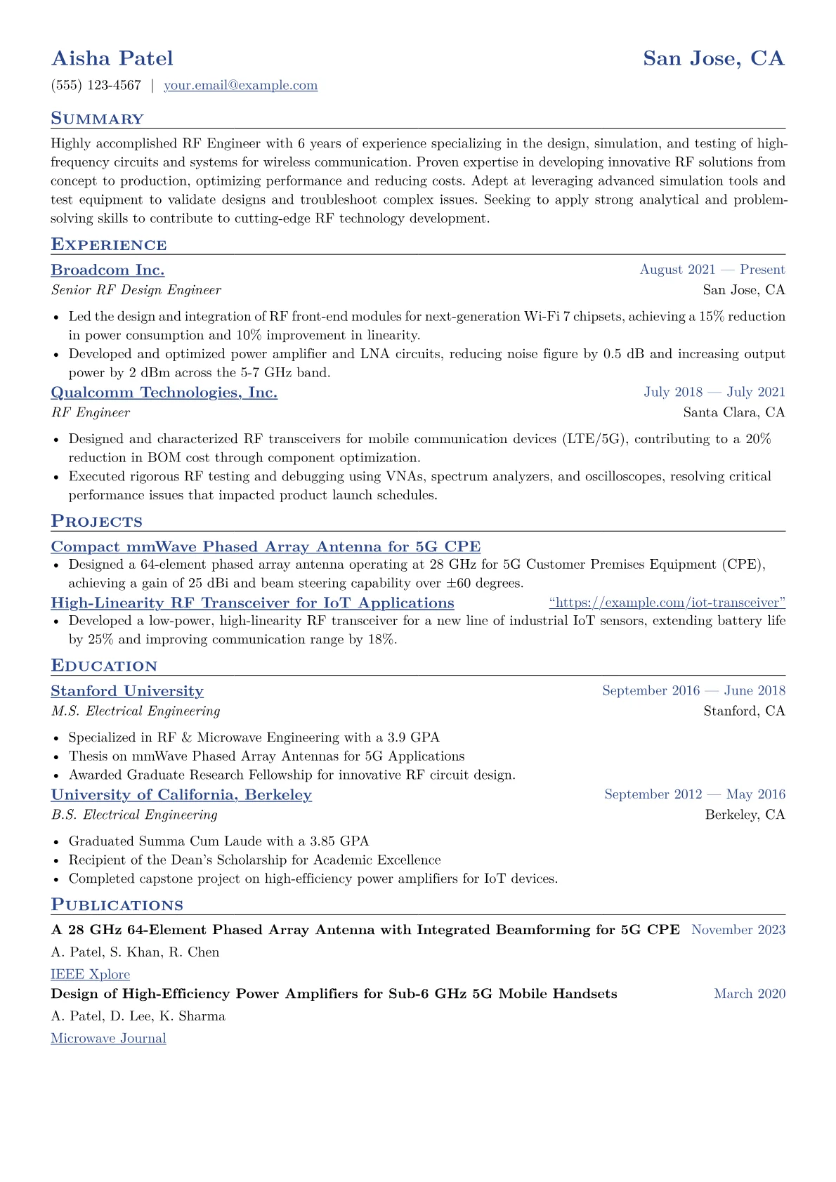 This template was built with JobSprout and can be remixed to create your own tailored RF Engineer resume. Leverage its structure to highlight your unique contributions and propel your career forward.