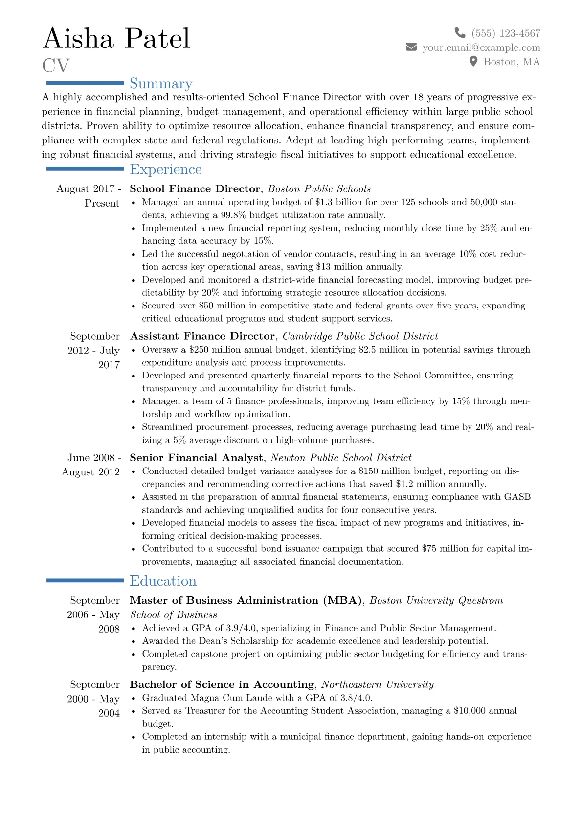 A compelling School Finance Director resume for the education sector must demonstrate precise fiscal leadership within public and private school environments. Hiring managers seek evidence of successful budget oversight, adherence to GASB standards, and astute grant acquisition. Achievements should reflect tangible cost efficiencies, successful audits, strategic financial planning that directly supports educational outcomes, and navigating complex state funding formulas or bond initiatives. Specifics like managing ESSA or IDEA funds and proficiency with education-specific finance platforms are highly valued.