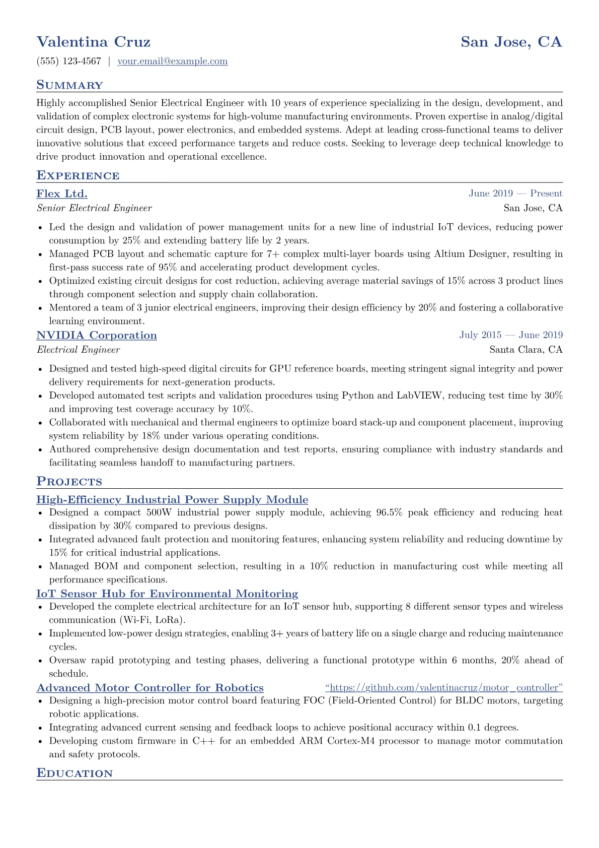 This template was built with JobSprout and can be remixed to create your own tailored Senior Electrical Engineer resume.