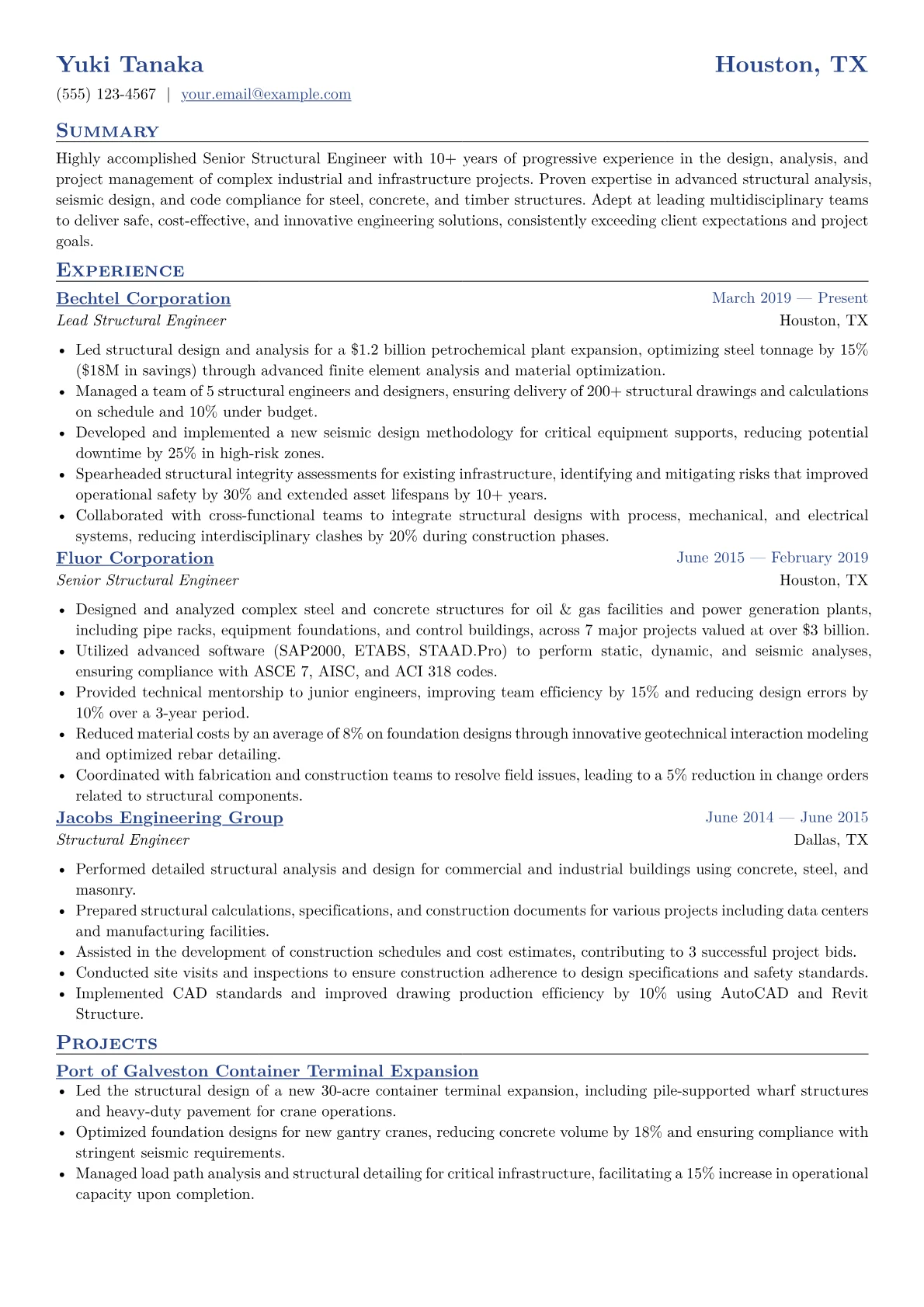 This template was built with JobSprout and can be remixed to create your own tailored Senior Structural Engineer resume.