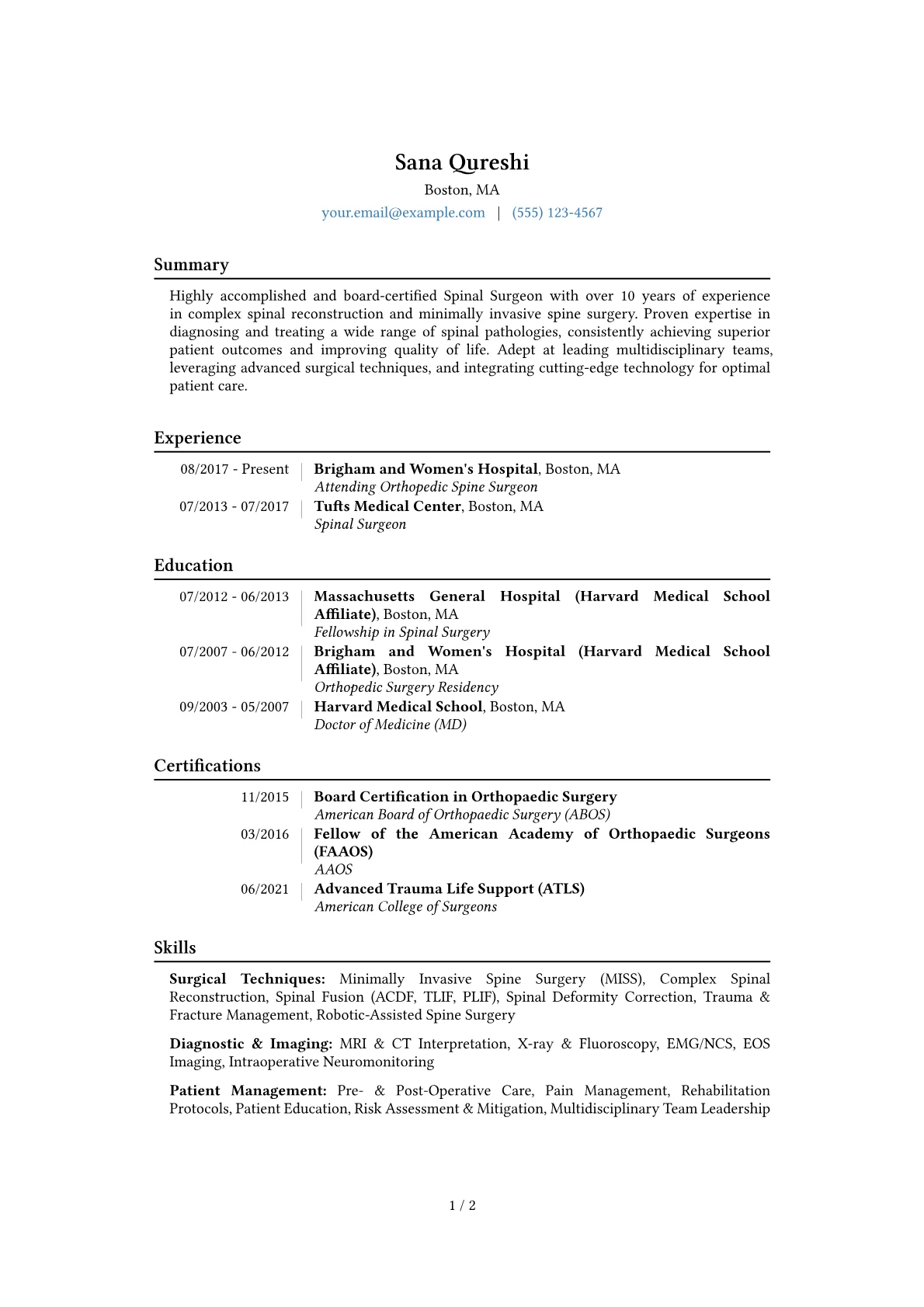 This template was built with JobSprout and can be remixed to create your own tailored Spinal Surgeon resume.