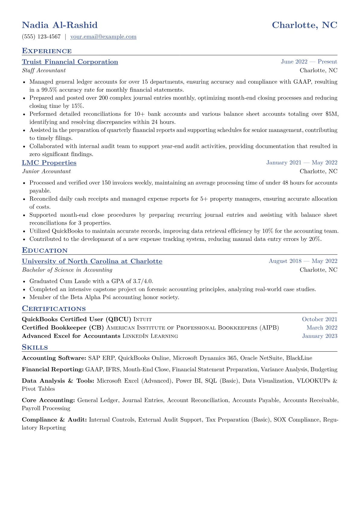 Hiring managers in Finance and Banking seek Staff Accountants who demonstrate meticulous attention to detail and a solid grasp of core accounting principles. A strong resume for this entry-level role effectively showcases foundational knowledge, proficiency in relevant software, and an aptitude for financial analysis, overcoming the challenge of limited professional experience with clear evidence of capability.