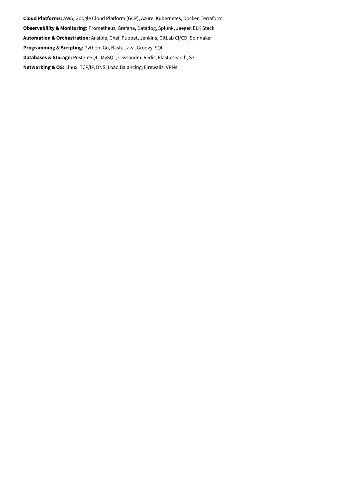 The Staff SRE example resume effectively showcases these crucial elements. It quantifies achievements with metrics such as "reduced incident volume by 30%" or "improved service latency by 20%," illustrating direct business impact. Skills are strategically grouped under headings like "Cloud & Container Orchestration," "Monitoring & Alerting," and "Infrastructure Automation," making the candidate's technical breadth immediately apparent. Specific tools like Prometheus, Grafana, Terraform, and Python are highlighted prominently, reinforcing relevant expertise for senior SRE roles.