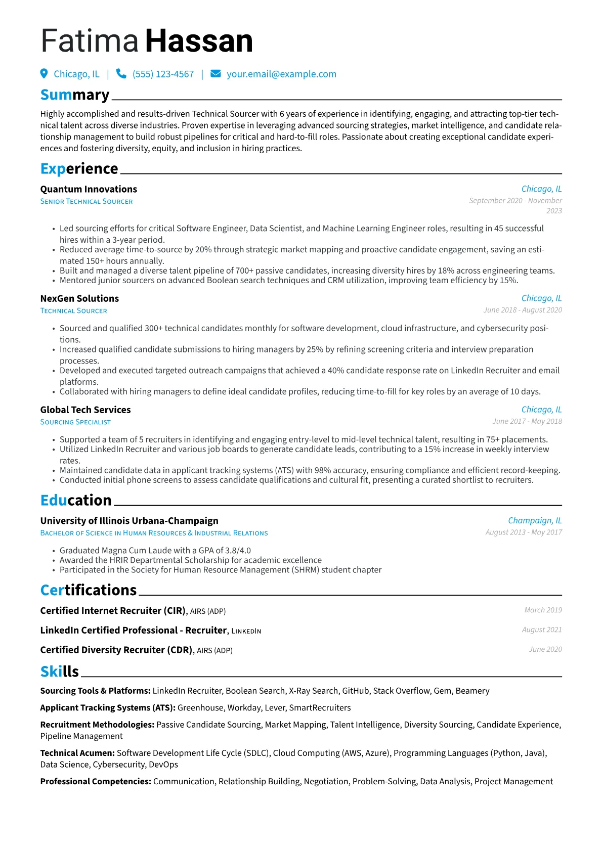 This template was built with JobSprout and can be remixed to create your own tailored Technical Sourcer resume, optimizing your unique experience for any target role.