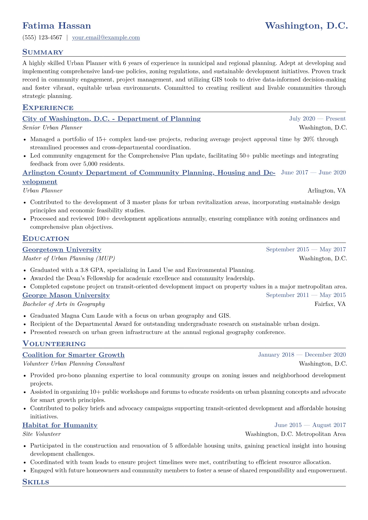 This template was built with JobSprout and can be remixed to create your own tailored Urban Planner resume.