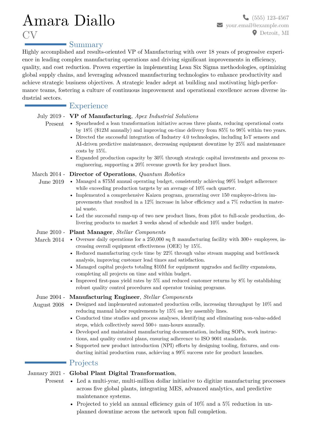 This template was built with JobSprout and can be remixed to create your own tailored VP of Manufacturing resume.